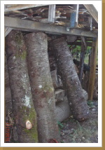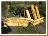 Der Baumstamm wird geschält ...